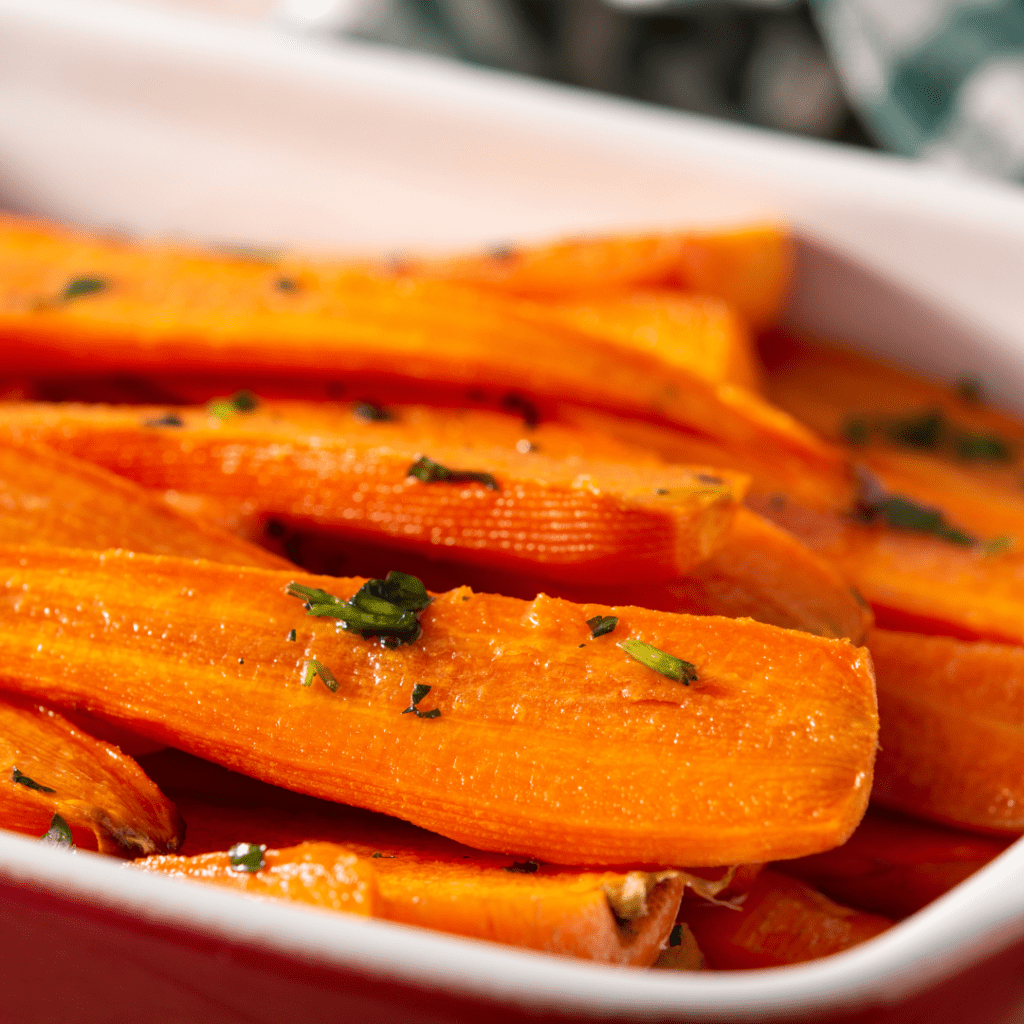 No mushy carrots here. These roast up nice and sweet in no time. You might enjoy these so much that you make them even when it’s not a holiday! Get the recipe here: Simple Roasted Carrots.